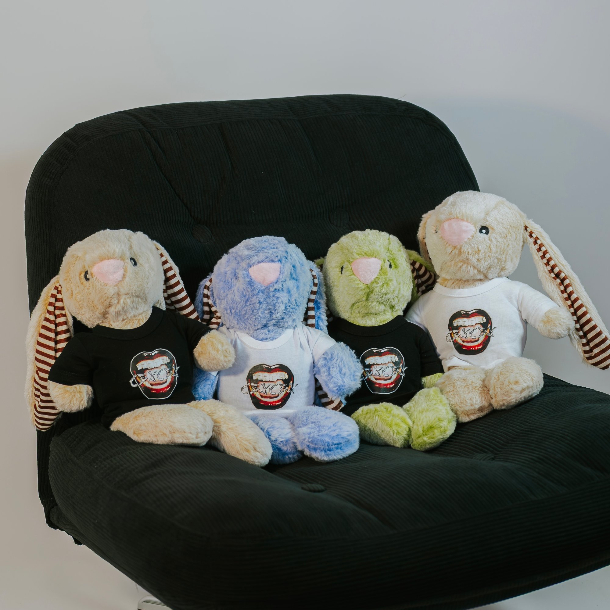 Whether it’s chilling on your desk, joining you in the studio, or sitting beside your vinyl collection — this bunny’s here for emotional support only (but does it really well).